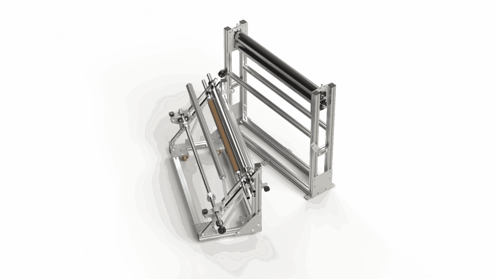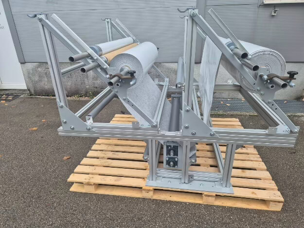 The ARU Fix Applicator is a stationary system developed for continuous and repeatable application of felt directly onto metal sheets in profiling lines. Fixed applicator for continuous lamination of anti-condensation fleece onto sheet metal. ALU BOSCH frame, fixed to the floor, for stable, repeatable lamination. Adjustable height alignment of pressure rollers, adjustable brake for felt roll and rubberized pressure rollers ensure controlled feeding and even bonding. Supports rolls up to Ø1000 mm - standard roll is 700 mm. This model is ideal for large‑scale manufacturers that require consistent output quality without repositioning equipment.