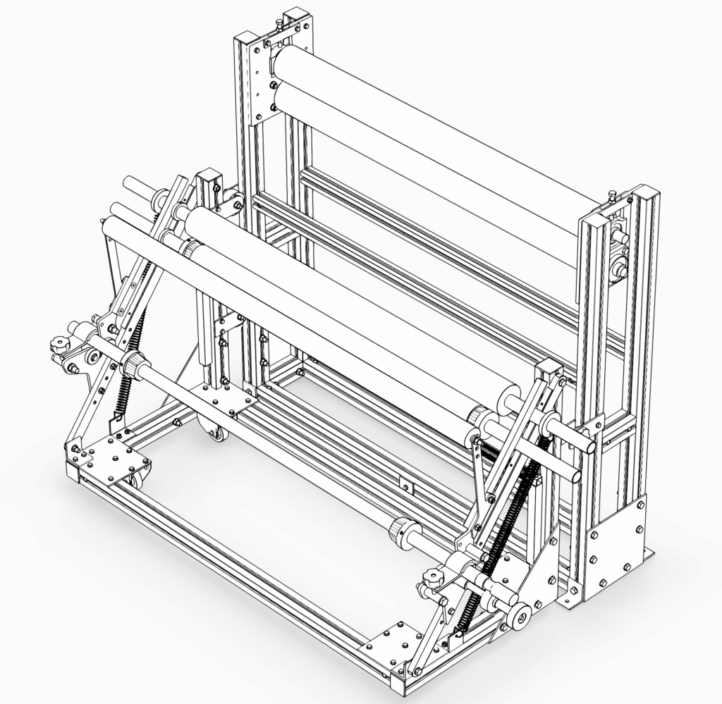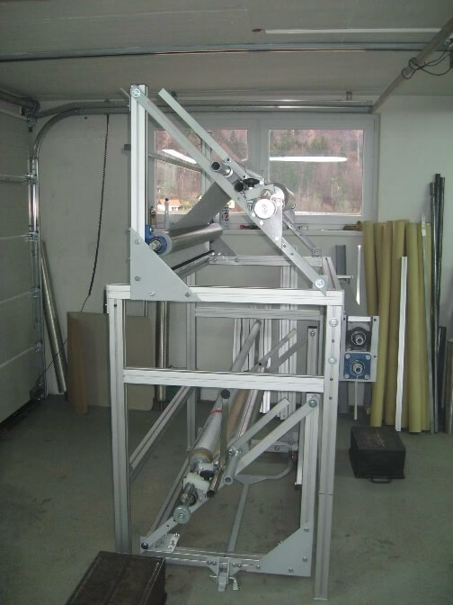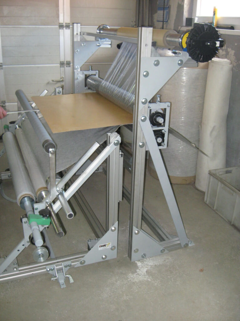 The ARU mobile applicator is designed for flexible and efficient application of anti-condensation felt to metal roof panels. The applicator is made of ALU BOSCH profiles and consists of original structural elements, allowing for multiple settings depending on the roll diameter and pressure roller height.