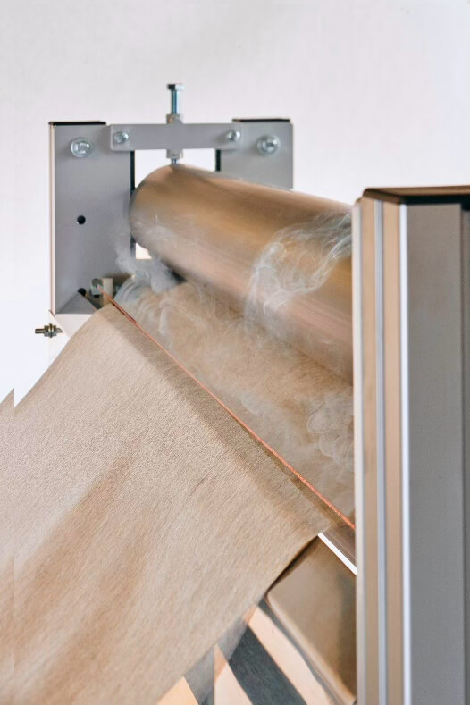 - Cylinders for pressing and gluing the fleece to the sheet metal